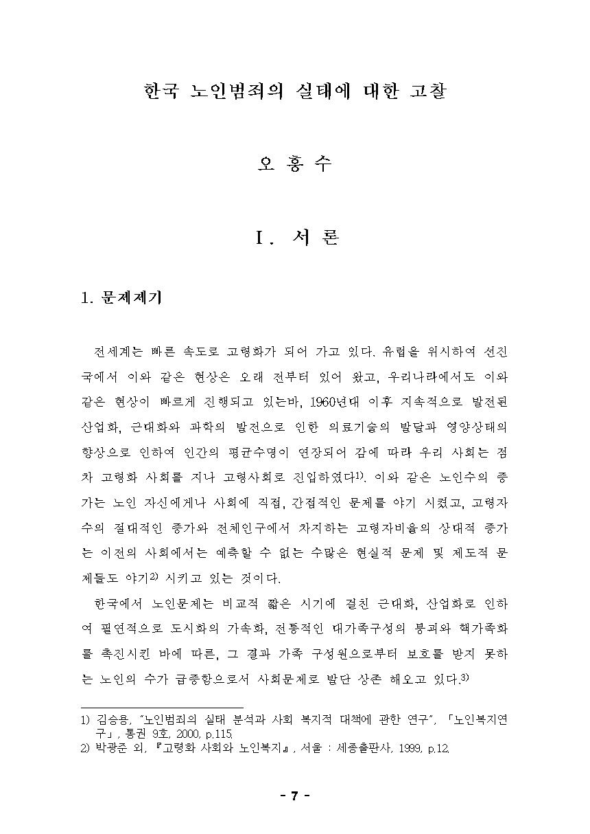 한국 노인범죄의 실태에 대한 고찰 - 오흥수