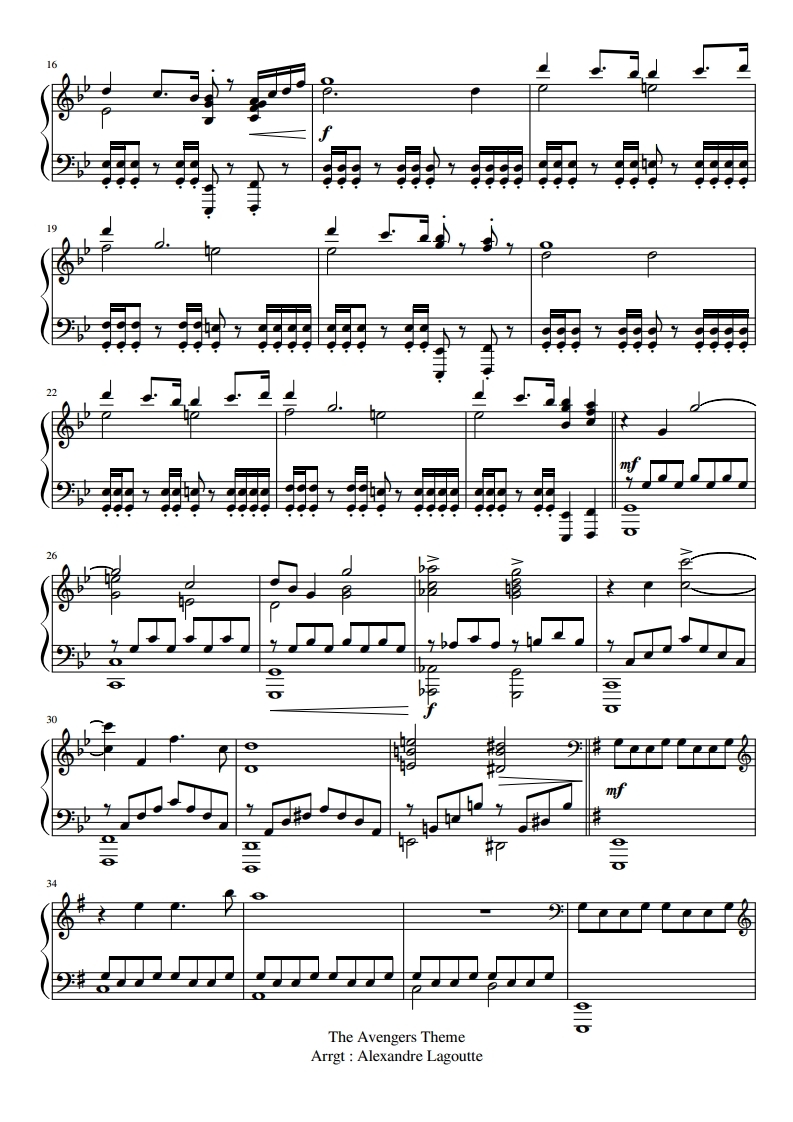 어벤져스 테마 피아노 악보, avengers theme piano, Piano Version, 피아노악보, 무료악보, 치기쉬운피아노악보, pdf악보입니다.