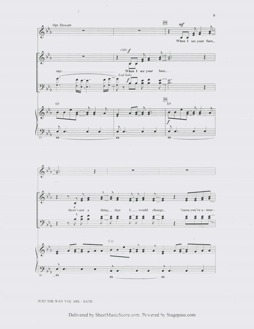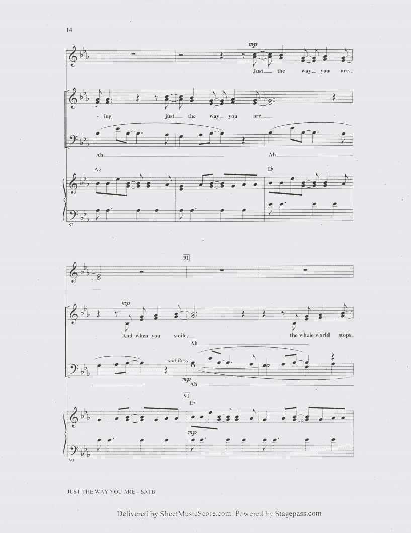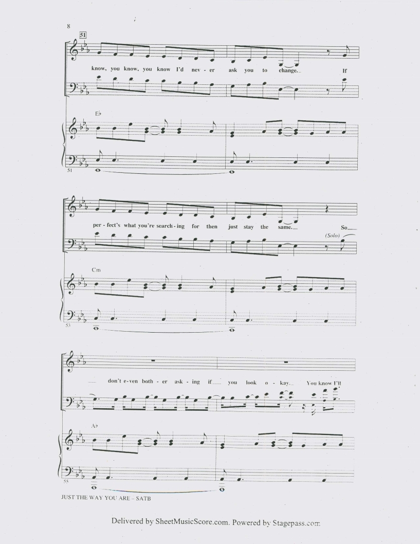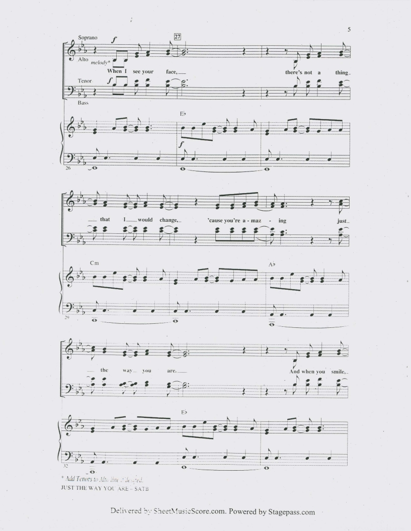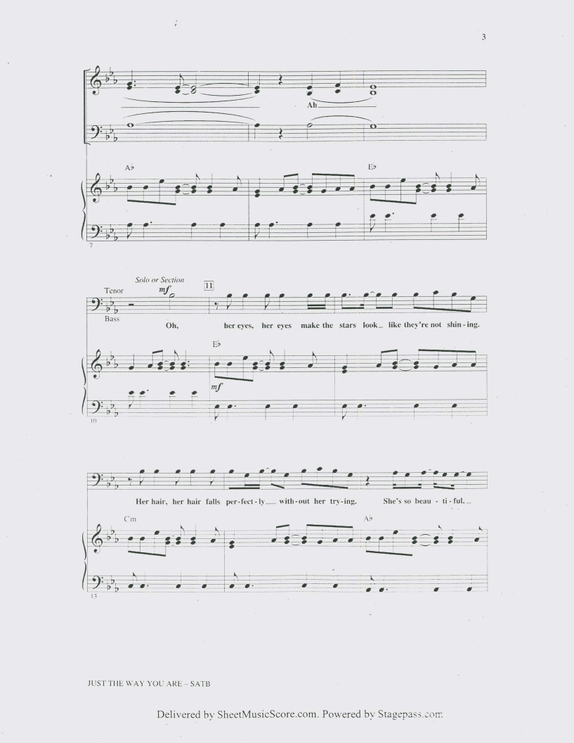 부르노마스, Bruno Mars, Just the Way You Are피아노악보, 치기쉬운피아노악보, 무료악보, pdf악보입니다.
