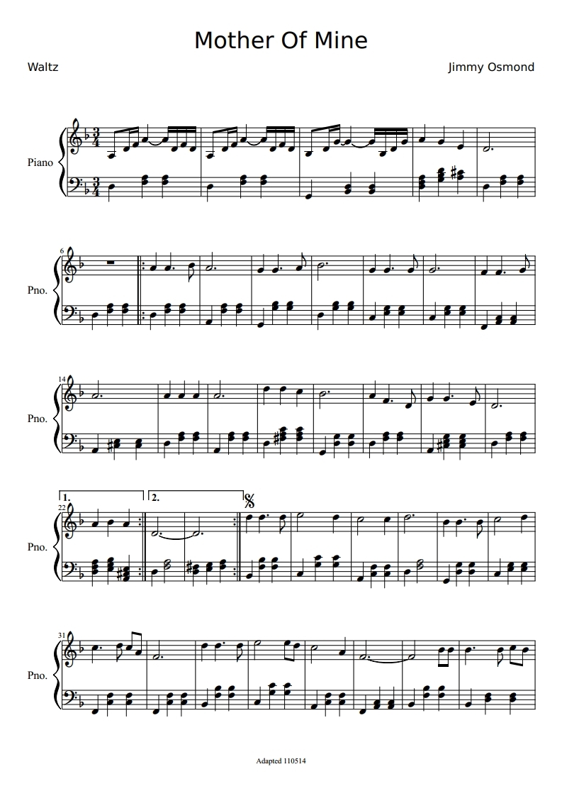 마더 어브 마인, 피아노악보, Mother of Mine, piano sheet, 치기쉬운피아노악보, 무료악보, pdf악보, 피아노쉬운악보, 피아노악보다운 가능합니다.