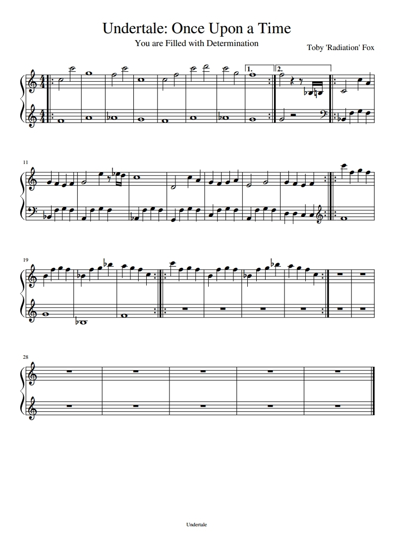 언더테일, 악보, Undertale, Once Upon a Time, 피아노악보, 무료악보, pdf악보, 치기쉬운피아노악보입니다.