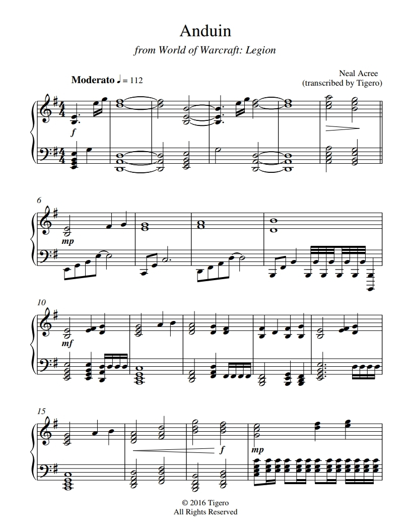 월드 오브 워크래프트 ost, Anduin - World of Warcraft: Legion Piano Cover, 피아노악보, 치기쉬운피아노악보, pdf악보, 무료악보입니다.