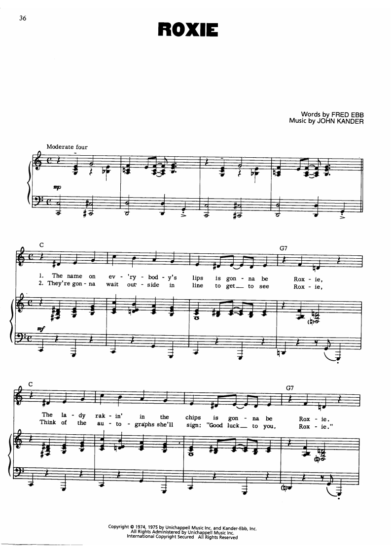 시카고 뮤지컬 ost 피아노악보, Chicago, Roxie, 피아노악보, 재즈피아노악보, 무료피아노악보, 무료악보, pdf악보, 치기쉬운피아노악보입니다.