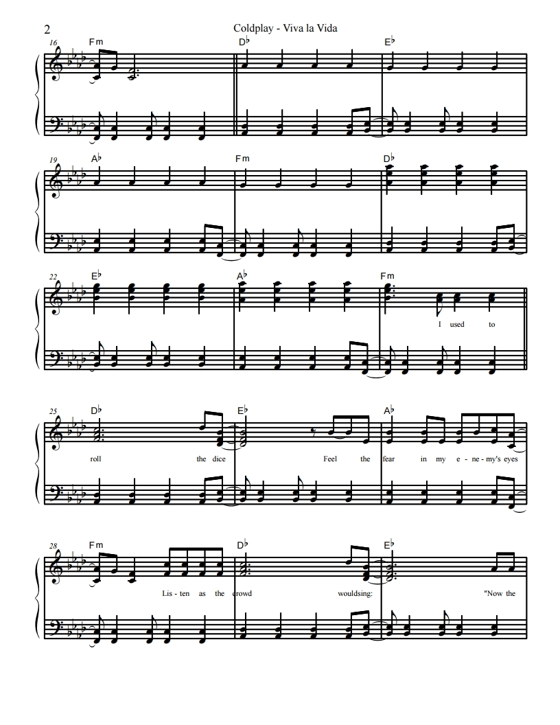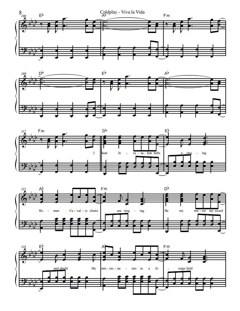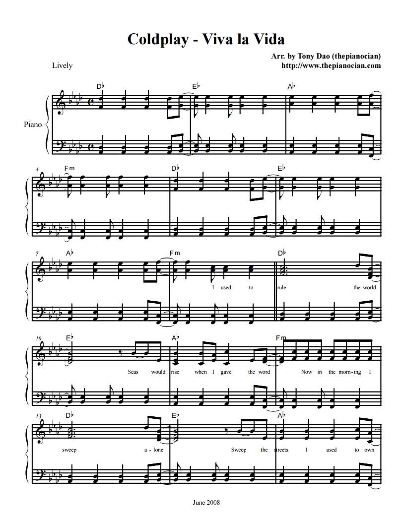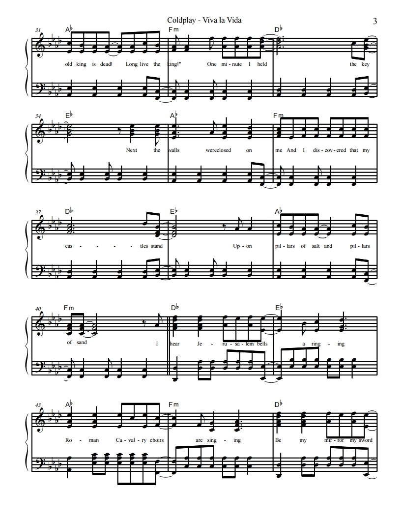 콜드플레이, Coldplay-Viva La Vida, 비바 라 비다 악보, 피아노악보, 무료악보, pdf악보, 치기쉬운피아노악보, 쉬운피아보악보입니다.