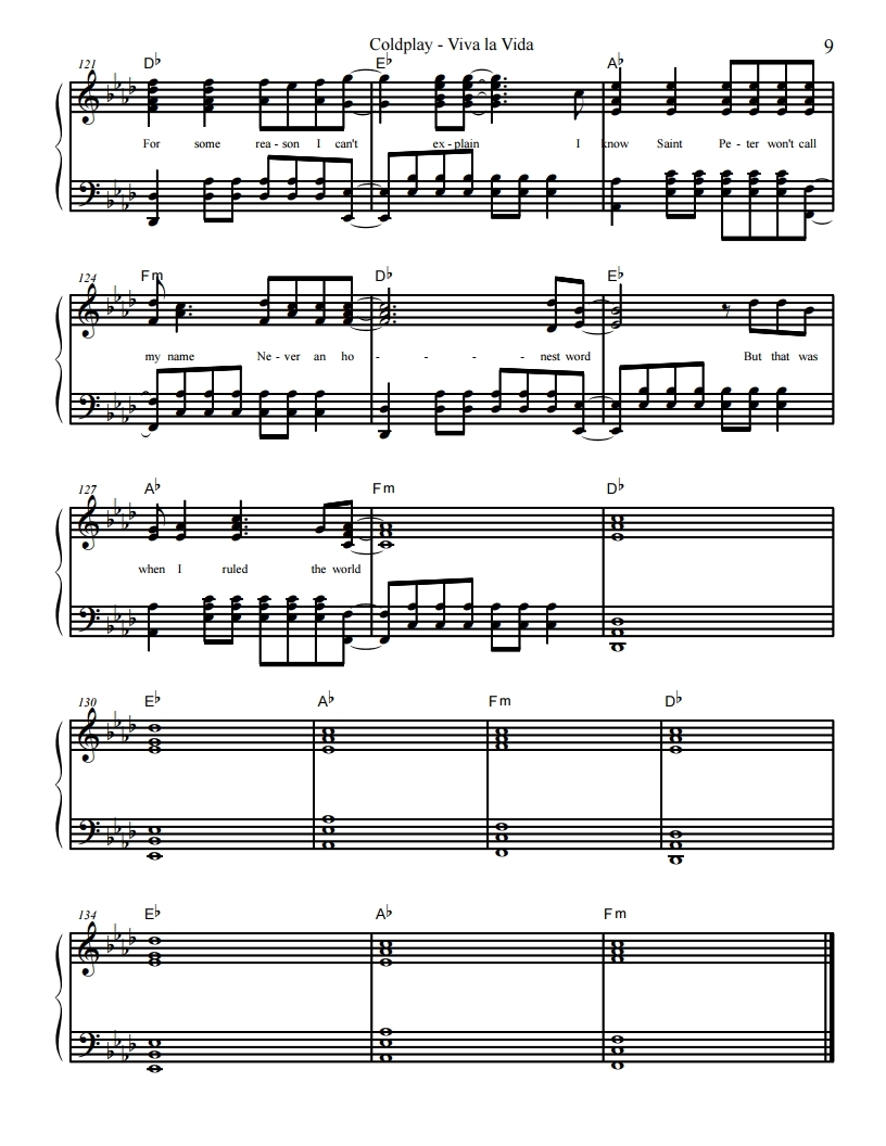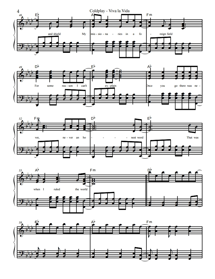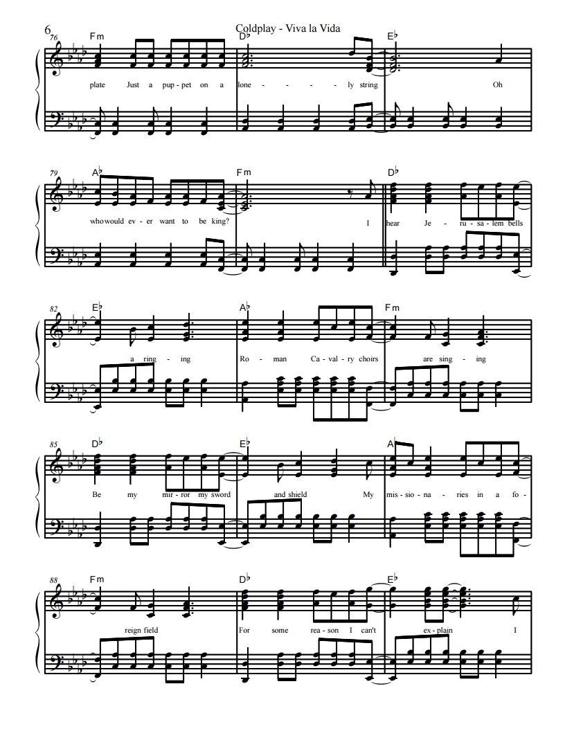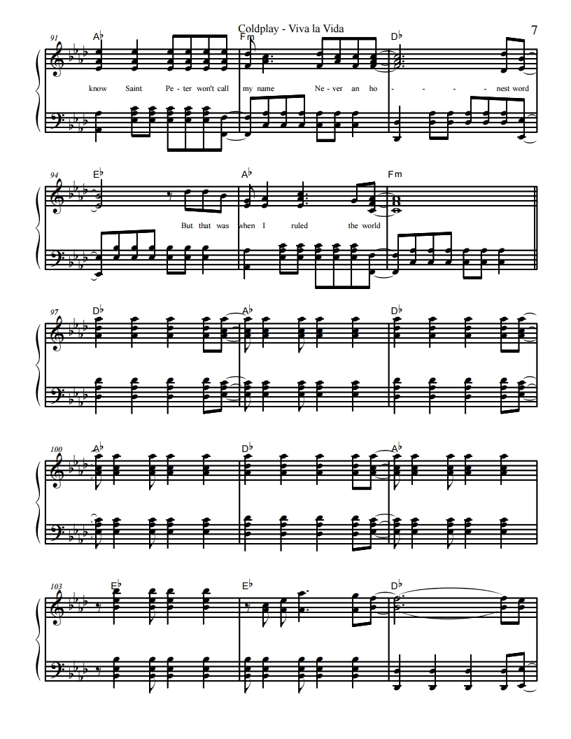 콜드플레이, Coldplay-Viva La Vida, 비바 라 비다 악보, 피아노악보, 무료악보, pdf악보, 치기쉬운피아노악보, 쉬운피아보악보입니다.