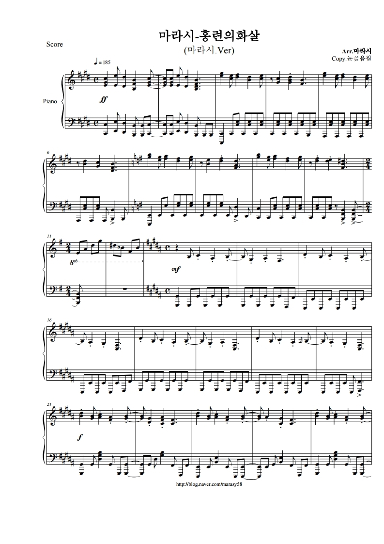진격의 거인 ost, 홍련의화살 피아노악보, 마라시, 피아노악보, 무료악보, 무료피아노악보, pdf악보, 치기쉬운피아노악보입니다.