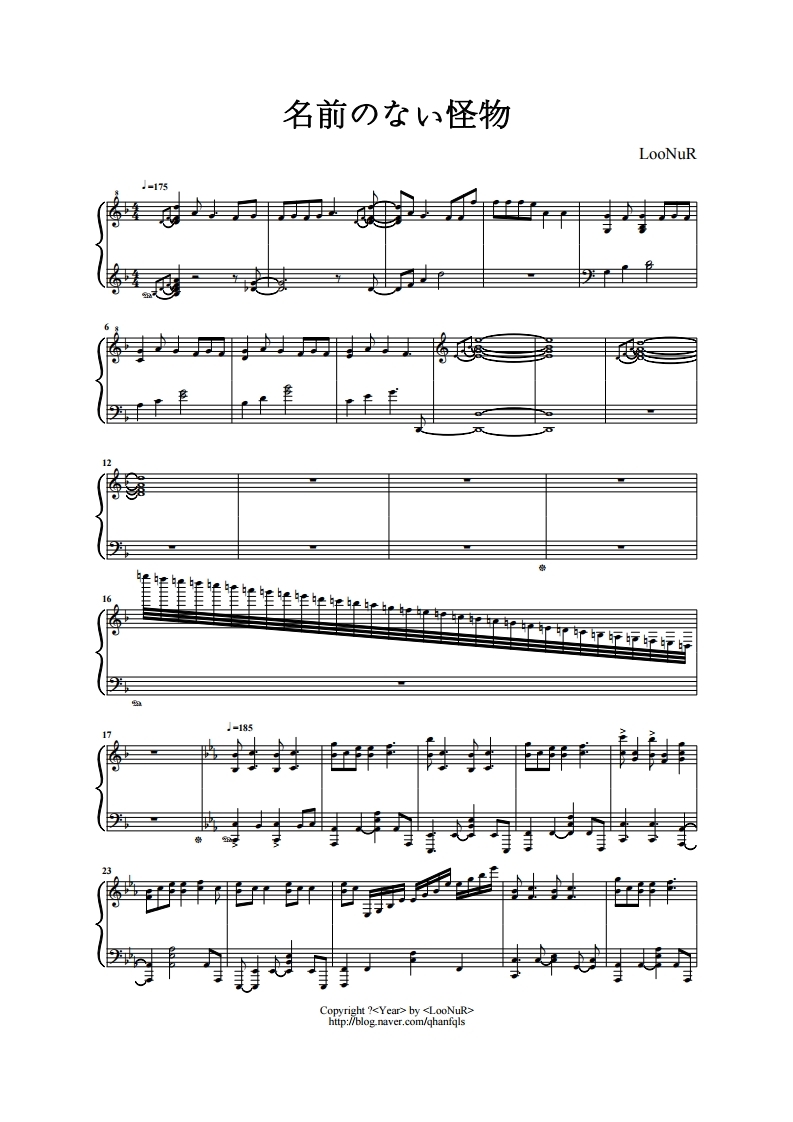 이름 없는 괴물 피아노악보, Namae no nai kaibutsu by Marasy, 이름없는 괴물, 피아노악보, 무료악보, pdf악보, 치기쉬운피아노악보입니다.