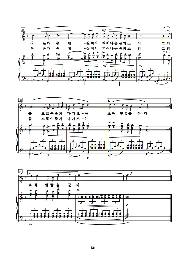 가곡 봄이 오는 소리 피아노 악보입니다.